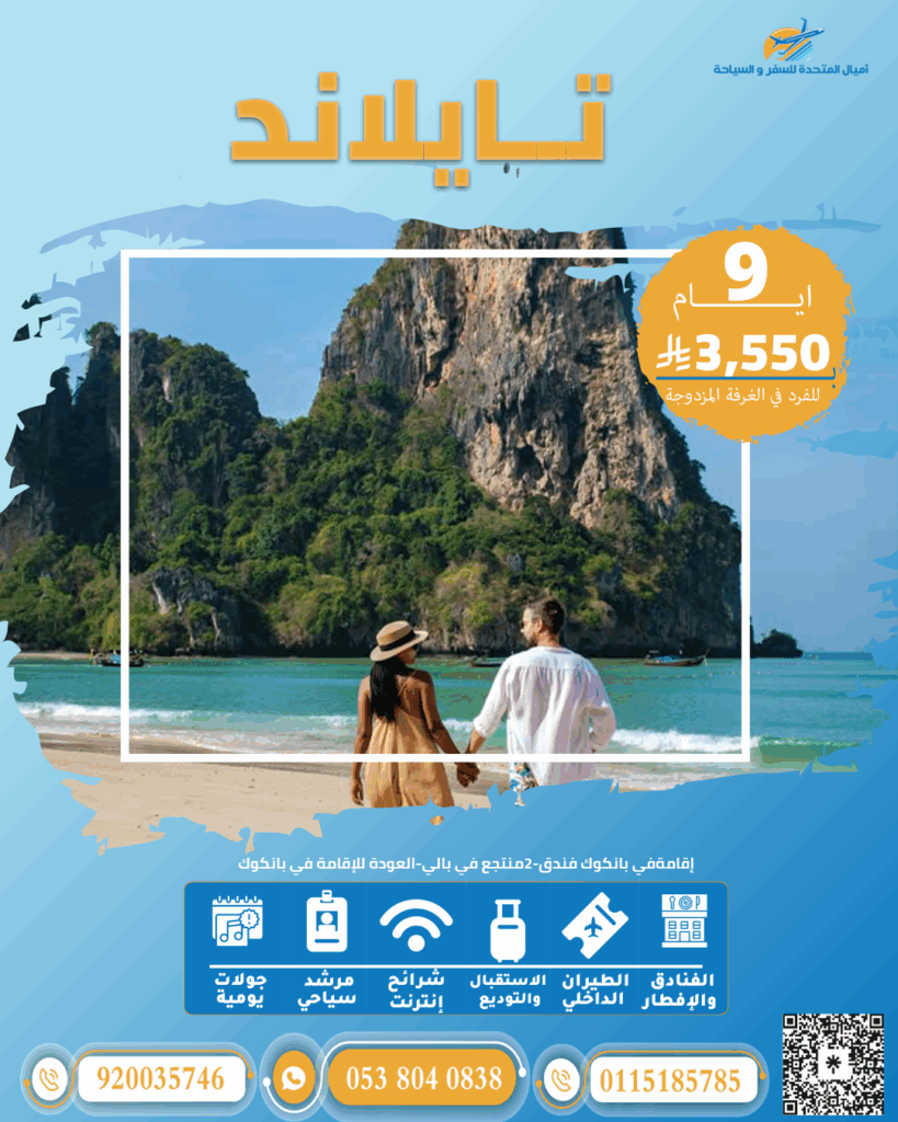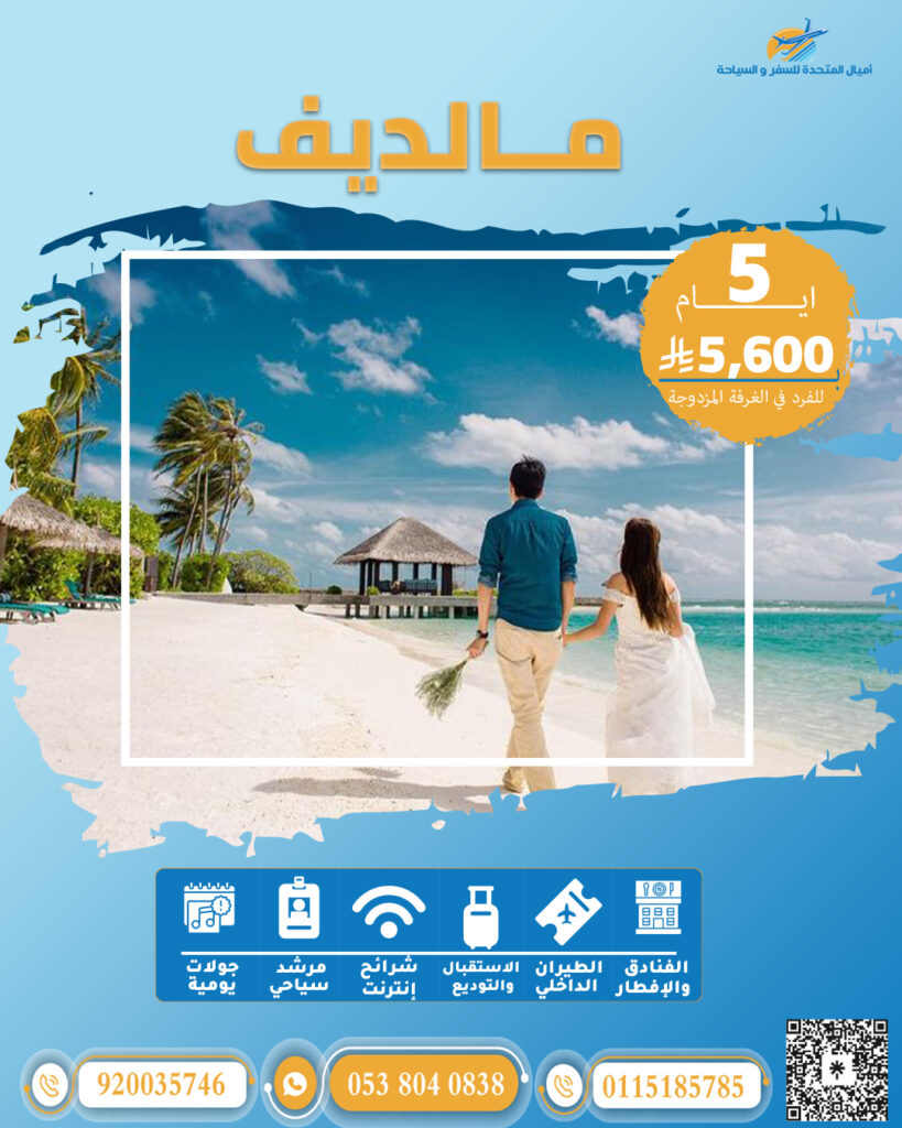 أشهر الوجهات الرومانسية في مكان واحد: المالديف – تايلاند – ماليزيا – أذربيجان – جورجيا – البوسنة.باقات متكاملة تشمل: الإقامة الفندقية، تذاكر الطيران ذهابًا وإيابًا، الإفطار اليومي، التنقلات الداخلية، والأنشطة الترفيهية.